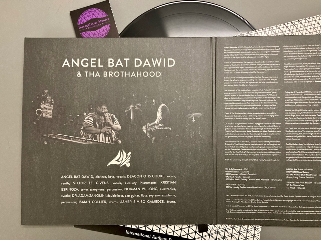 | Die physische Veröffentlichung von LIVE setzt fort, was, allen Widrigkeiten zum Trotz, bereits ein arbeitsreiches Jahr 2021 für Angel gewesen ist. Als Mitglied von Damon Locks‚ Black Monument Ensemble ist sie auf der neuen Single Now (Forever Momentary Space) der Band zu hören. Letzten Monat remixte sie Sunrise von Alan Braufmans letztem Album The Fire Still Burns und arbeitete mit dem Dichter Ross Gay an einem Track für Jagjaguwars 25-Jahre-Jubiläumsserie Dilate Your Heart.Angel ist immer wieder aufgetreten, insbesondere als erste Artist in Residence für die wegweisende neue Plattform Oda und kürzlich bei Elastic Arts in Chicago für ihre eigene Reihe MOTHERSHIP9 Virtual Exodus: The Great Cosmic Migration. Neben ihren Auftritten ist sie monatlich in ihrer NTS-Radioshow zu hören.LIVE wurde im Oktober letzten Jahres unter großem Beifall digital veröffentlicht. Das Album wurde von Pitchfork als „Best New Music“ ausgezeichnet und war in den „Best Albums of 2020“-Listen von WIREMagazine, Brooklyn Vegan, NPR Music, The Vinyl Factory und anderen vertreten. Das Album wurde am 1. November 2019 im Haus der Berliner Festspiele in Berlin während des JazzFest Berlin aufgenommen. Für Angel and Tha Brothahood – das Deacon Otis Cooke (Gesang, Synthesizer), Viktor Le Givens (Gesang, Zusatzinstrumente), Xristian Espinoza (Tenorsaxophon, Percussion), Norman W. Long (Elektronik, Synthesizer), Dr. Adam Zanolini(Kontrabass, Bassgitarre, Sopransaxophon, Flöte, Perkussion), Isaiah Collier(Schlagzeug) und Asher Simiso Gamedze (Schlagzeug) umfasst –war es der Auftakt ihrer ersten Europatournee und der Schauplatz mehrerer rassistisch aufgeladener Konfrontationen im Verlauf der Reise. Angel hat über die Show und ihre schwierigen Erfahrungen ausführlich mit Joshua Minsoo Kim in einer eindrucksvollen Ausgabe von Tone Glow im vergangenen Oktober und kürzlich mit Ted Gaier für die Schweizer Wochenzeitung WOZ gesprochen. |